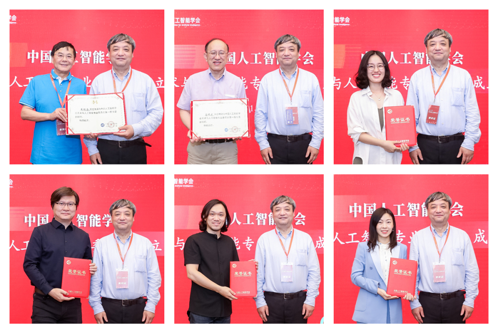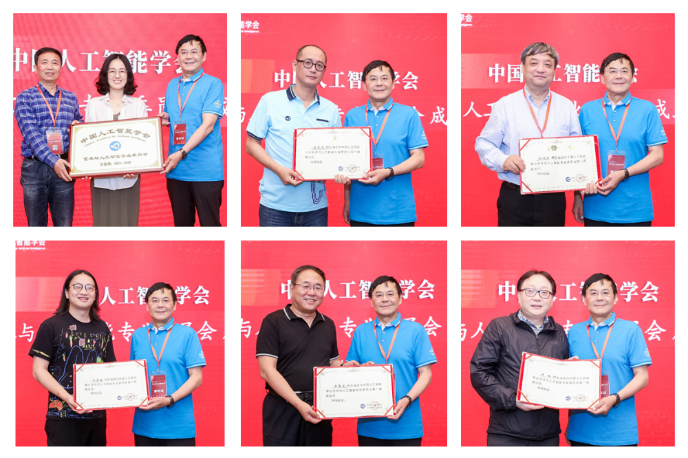 戴琼海理事长、马少平副监事长为CAAI艺术与人工智能专业委员会授牌,戴琼海理事长为艺术与人工智能专业委员会主任委员、副主任委员颁发荣誉证书。
