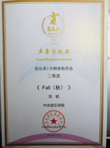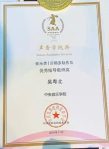 近日,由中国电影电视技术学会主办的第五届“声音学院奖”圆满落幕,kaiyun官网音乐人工智能与音乐信息科技系一年级博士研究生刘韧同学(导师:吴粤北教授)荣获该比赛音乐类分期多轨作品组别的一等奖(作品《敦煌谣》)与二等奖(作品《秋》),这是近年来kaiyun官网学生在该比赛中获得的最好成绩,刘韧的指导教师吴粤北教授获得本次比赛组委会授予的优秀指导教师奖。
