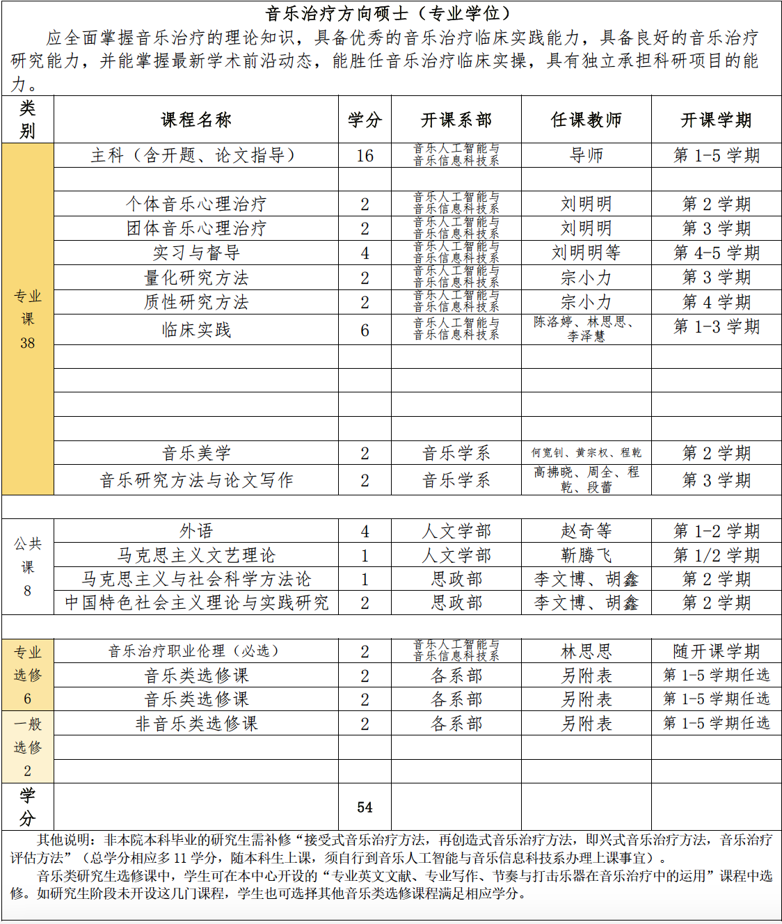 音乐治疗专业硕士研究生课程设置(2025年更新)