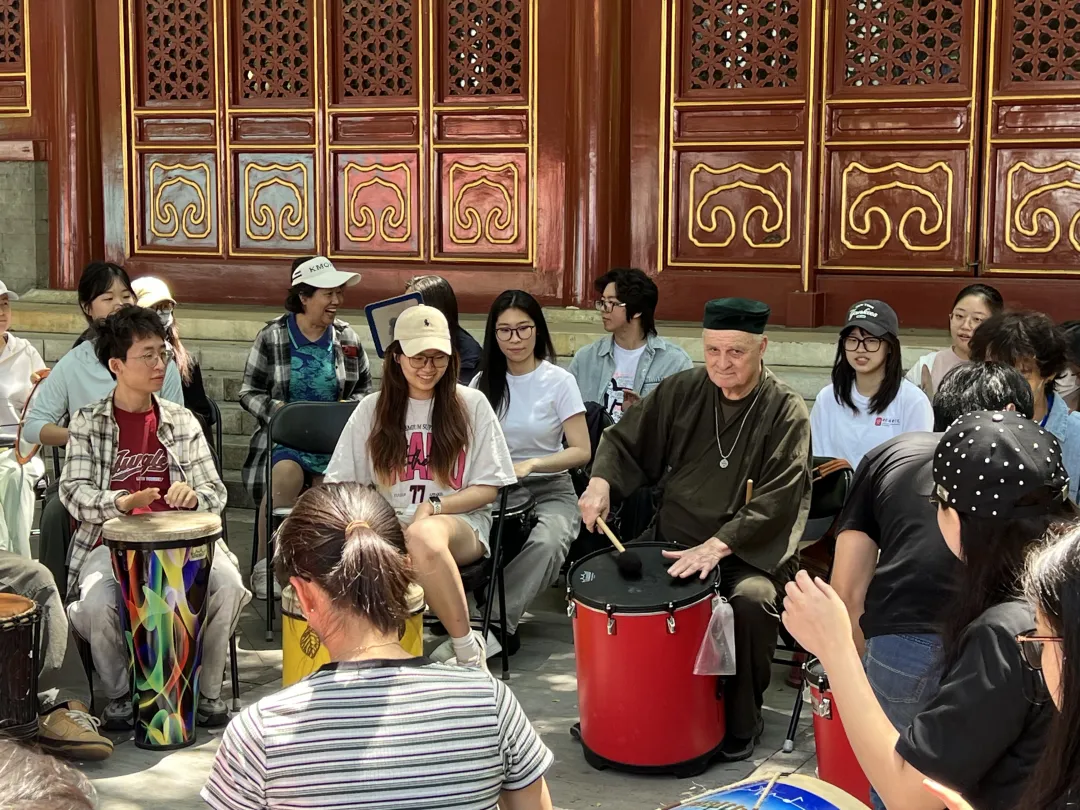 5月19日中午,校园里回荡着充满生命力的节奏。享誉全球的“鼓圈之父”Arthur Hull亲领的团体鼓圈体验活动在王府音乐厅前广场圆满举办,百余名师生热情参与。该活动由中国鼓圈先行者中央民族大学张弩老师、kaiyun官网音乐治疗专业刘明明老师共同带领。