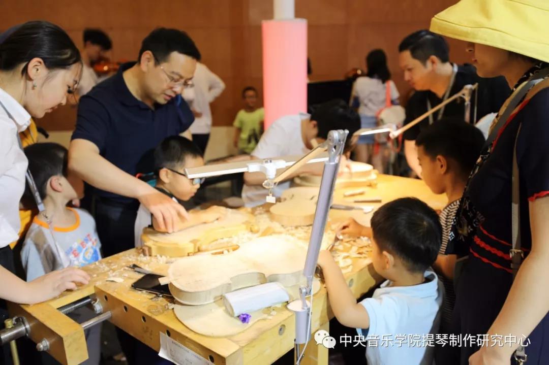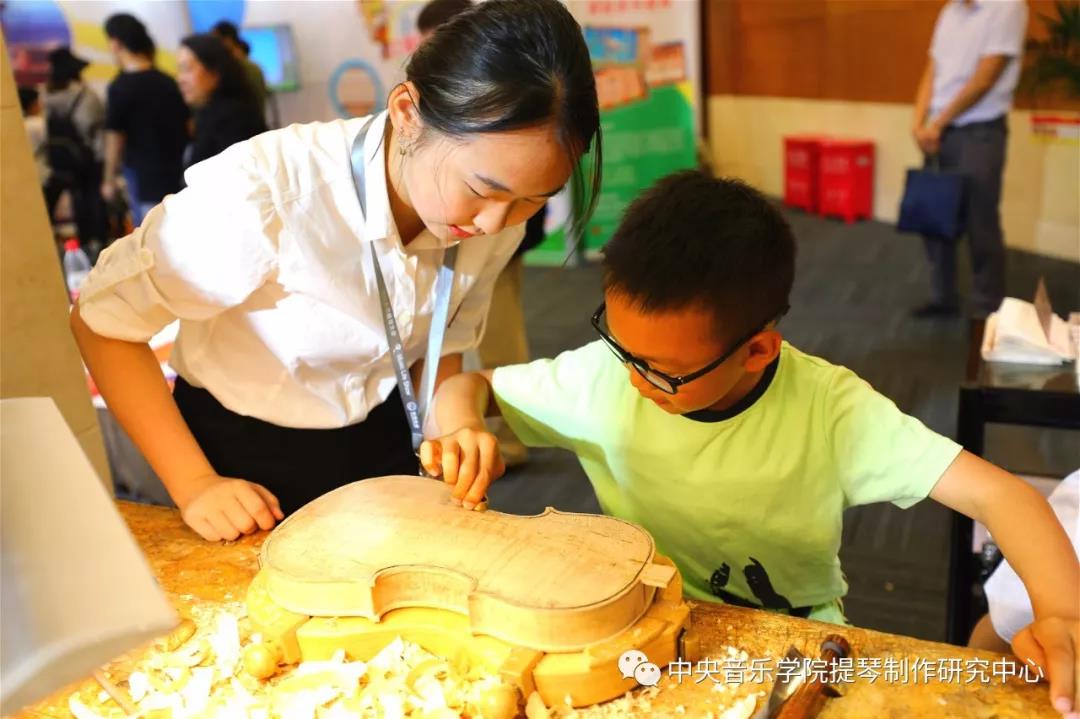 因为正逢周末,许多音乐爱好者和一些家长带着他们的孩子前来参观。活动期间,我系展位版块受到了广大观众的喜爱,各个区域都停留着观摩拍照的参观者,不论年龄大小,或是家长带着孩子,经过时都会在我系版块前驻足观看,对于提琴制作这门艺术充满了好奇心。