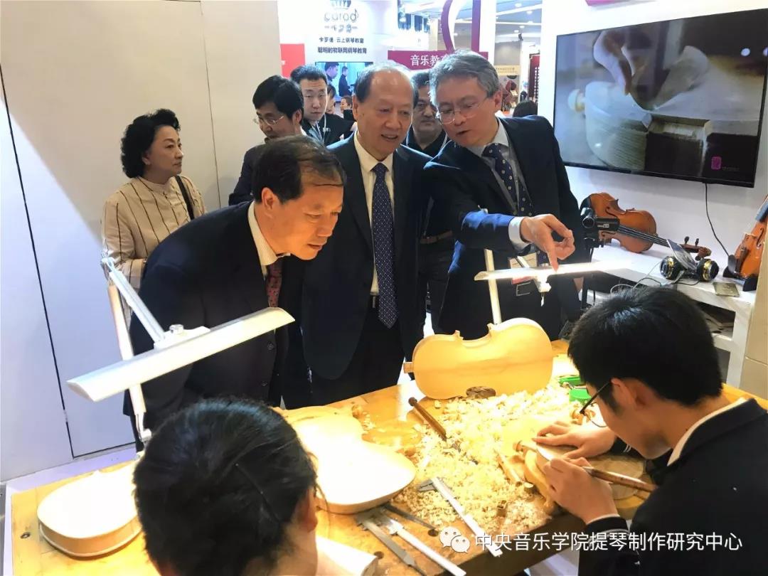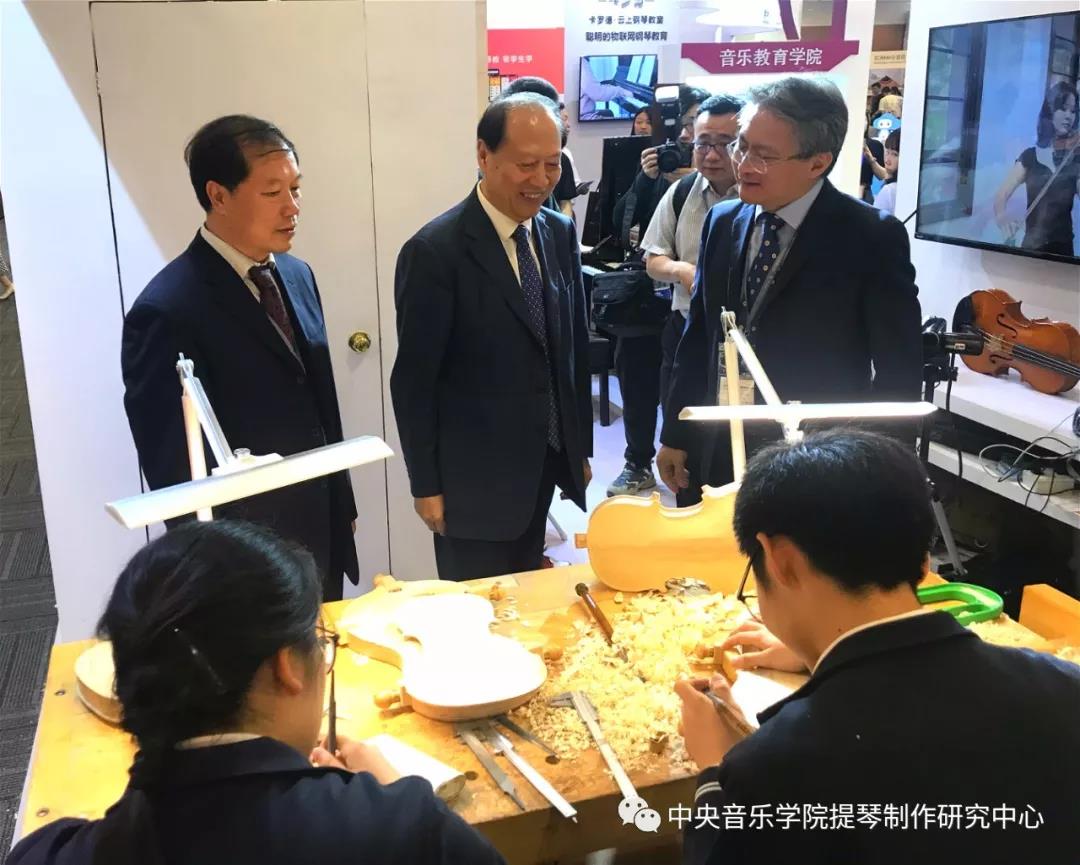 今天来我系展位参观指导的领导有:中国乐器协会理事长王世成、kaiyun体育网页登录入口党委书记赵旻。他们来到我系展位版块,驻足参观,高彤彤副主任为两位领导讲解介绍。