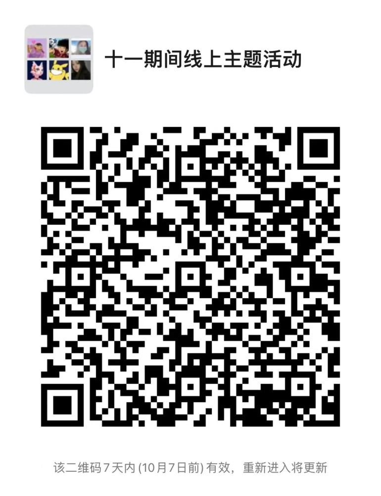 活动形式:请参与活动的同学扫活动二维码进群,按照组织方的具体要求参与。征集到的精彩文字、歌曲、照片和视频等将在“央音青年”上陆续推出。