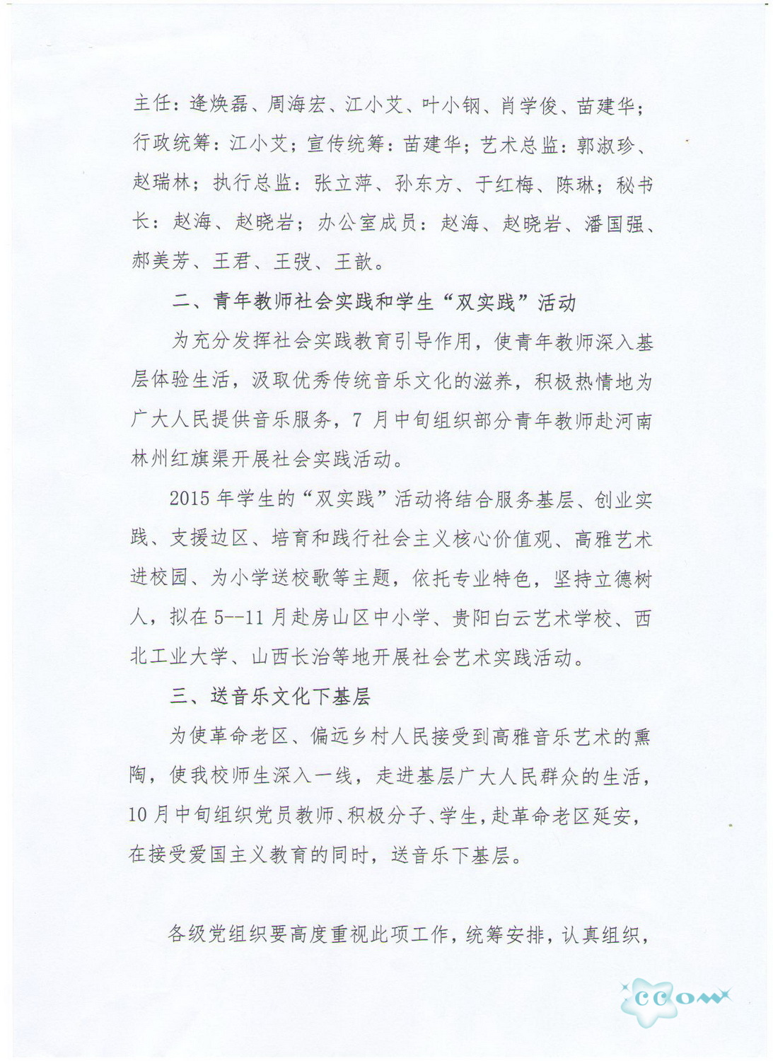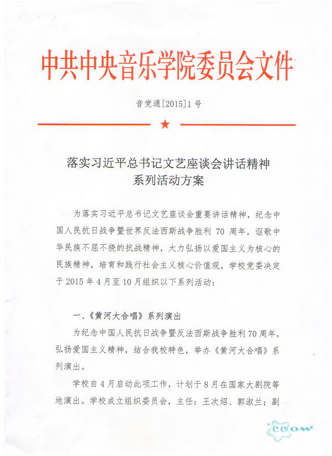 落实习近平总书记文艺座谈会讲话精神系列活动方案