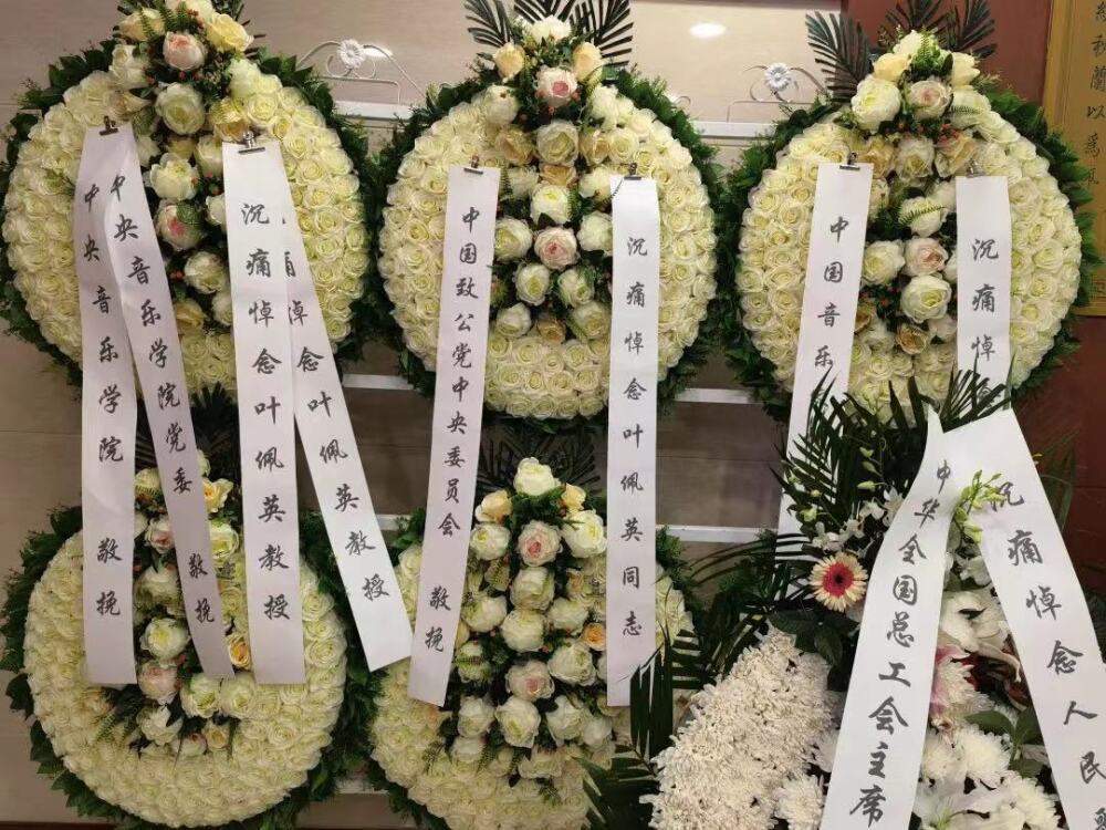 叶佩英教授逝世后,中国致公党中央委员会、中华全国归国华侨联合会、中华全国总工会、中国音乐家协会、国家市场监督管理总局、kaiyun体育网页登录入口、天津音乐学院、中国华侨历史博物馆、海南省音乐家协会、致公党北京市委员会、珠江电影集团、新加坡南方艺术研究会、中国延安鲁艺校友会、kaiyun体育网页登录入口北美校友会、李德伦音乐基金会、惠州市归国华侨联合会等单位及领导同志,著名艺术家、音乐家以及海内外叶佩英教授生前亲友、同事、学生以及社会各界人士纷纷打来电话,发来唁电,敬献花圈、挽联,以不同方式对叶佩英教授的去世表示哀悼,对其家属表示慰问。