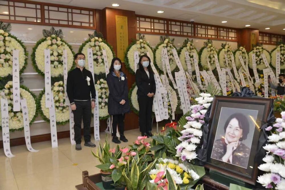 4月13日,叶佩英教授遗体送别仪式在北京八宝山殡仪馆兰厅举行。