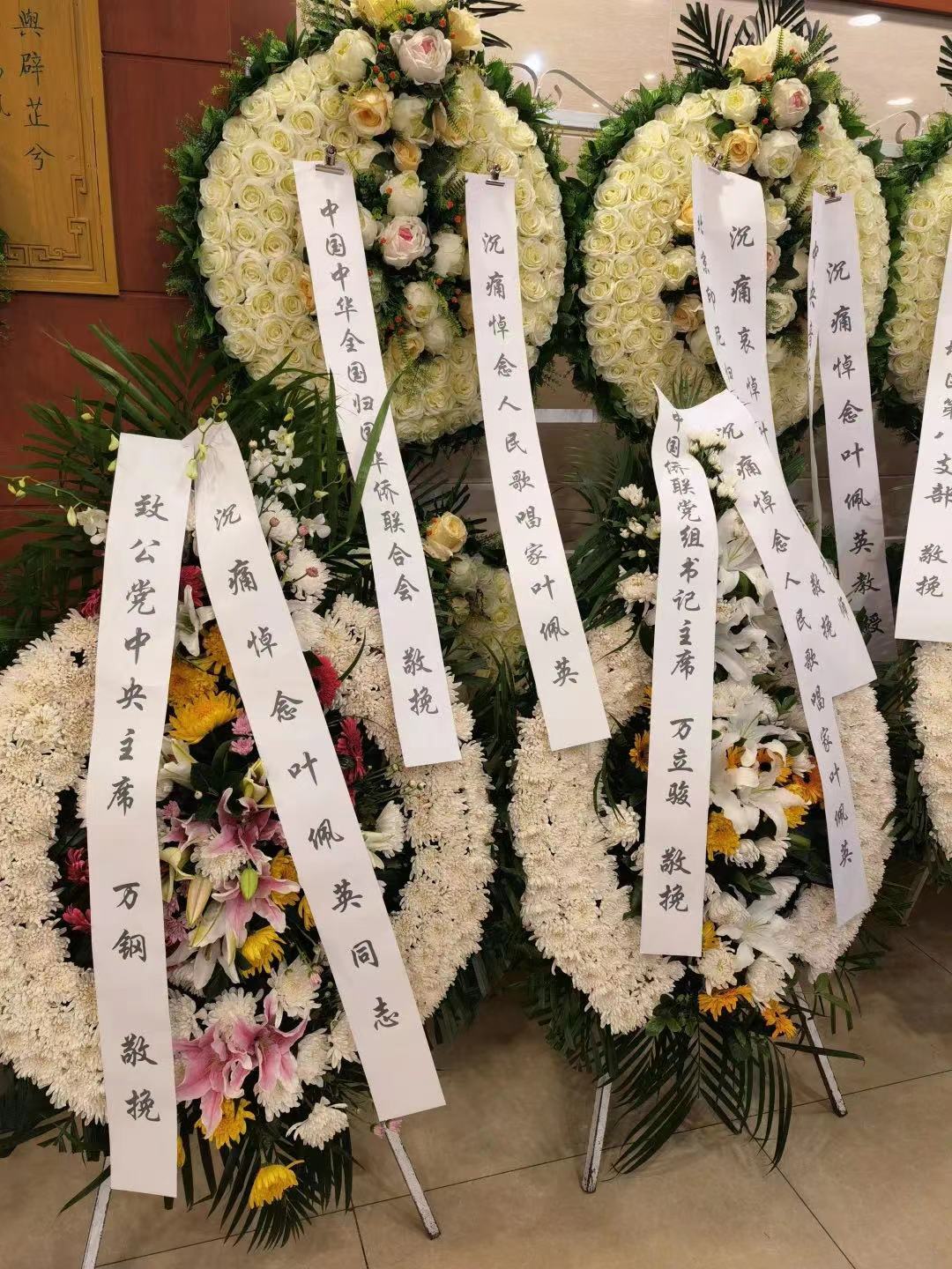 社会各界友好人士及师生、亲友,分别以现场悼念或赠送花圈等形式,对叶佩英教授的逝世表示哀悼。
