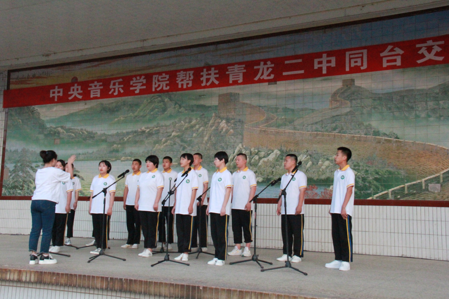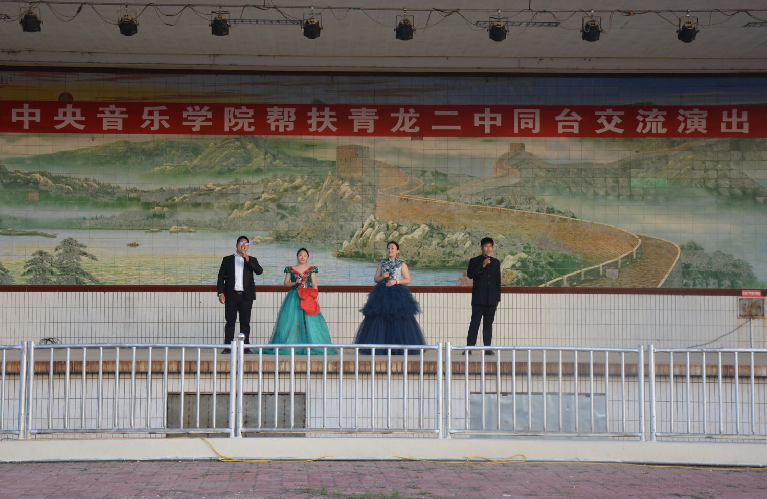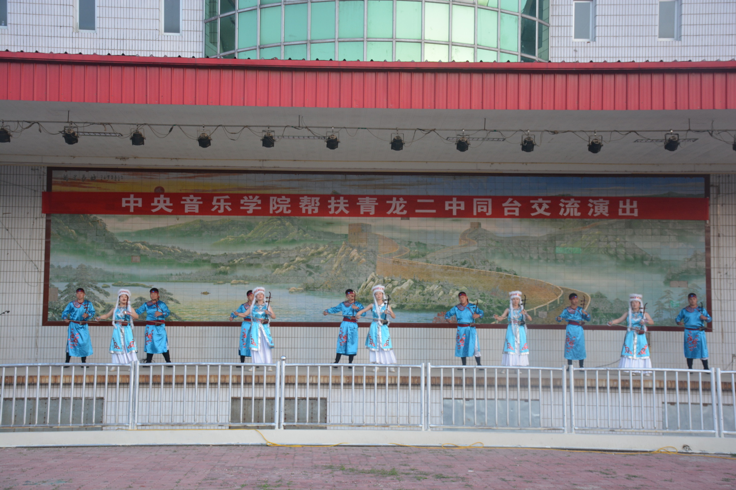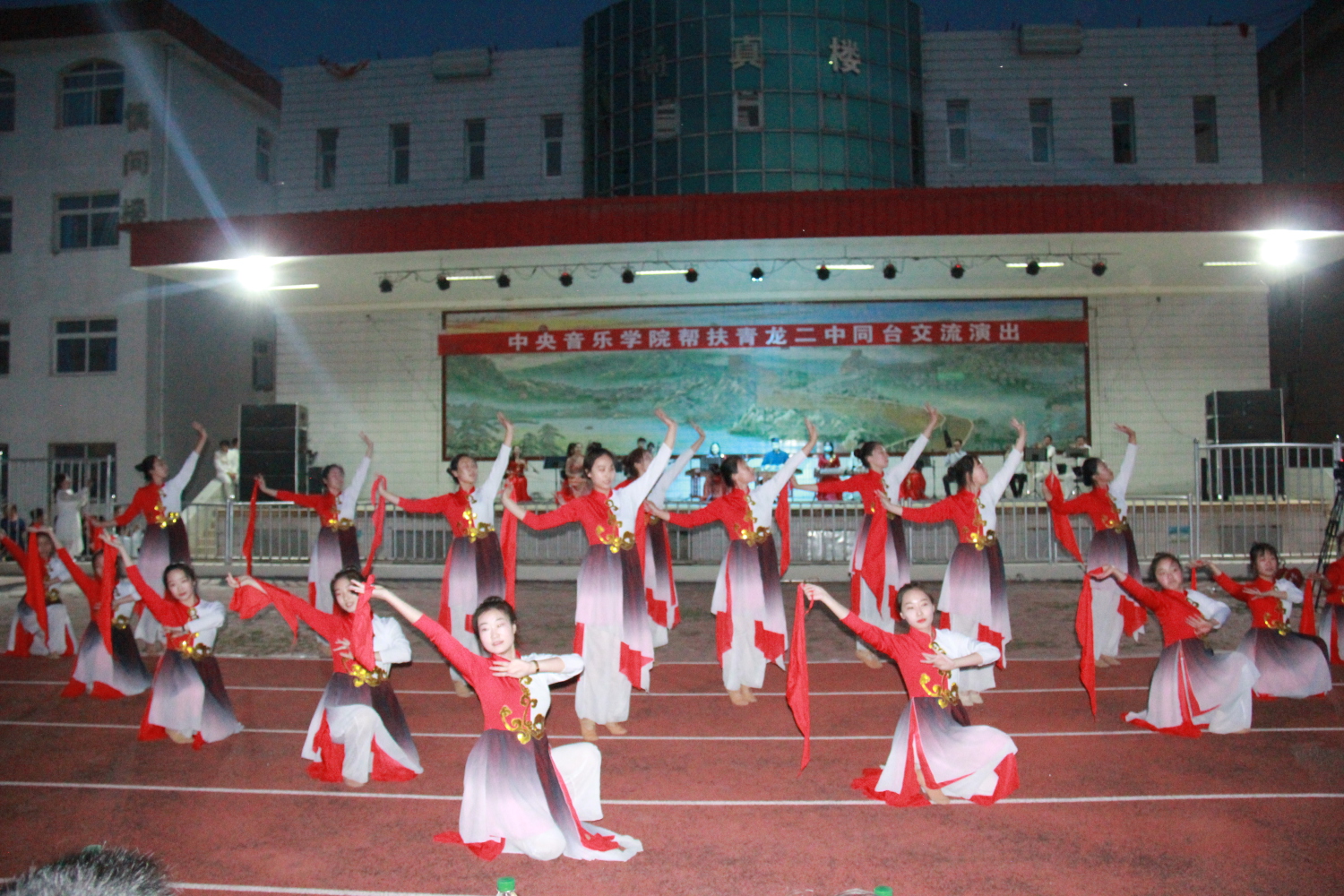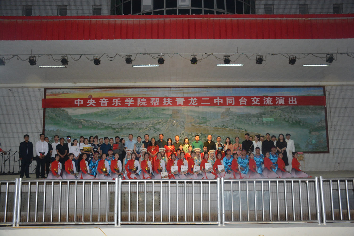 座谈会结束后,双方精心筹备的“kaiyun体育网页登录入口与青龙二中师生交流演出”在青龙二中操场主舞台举行。