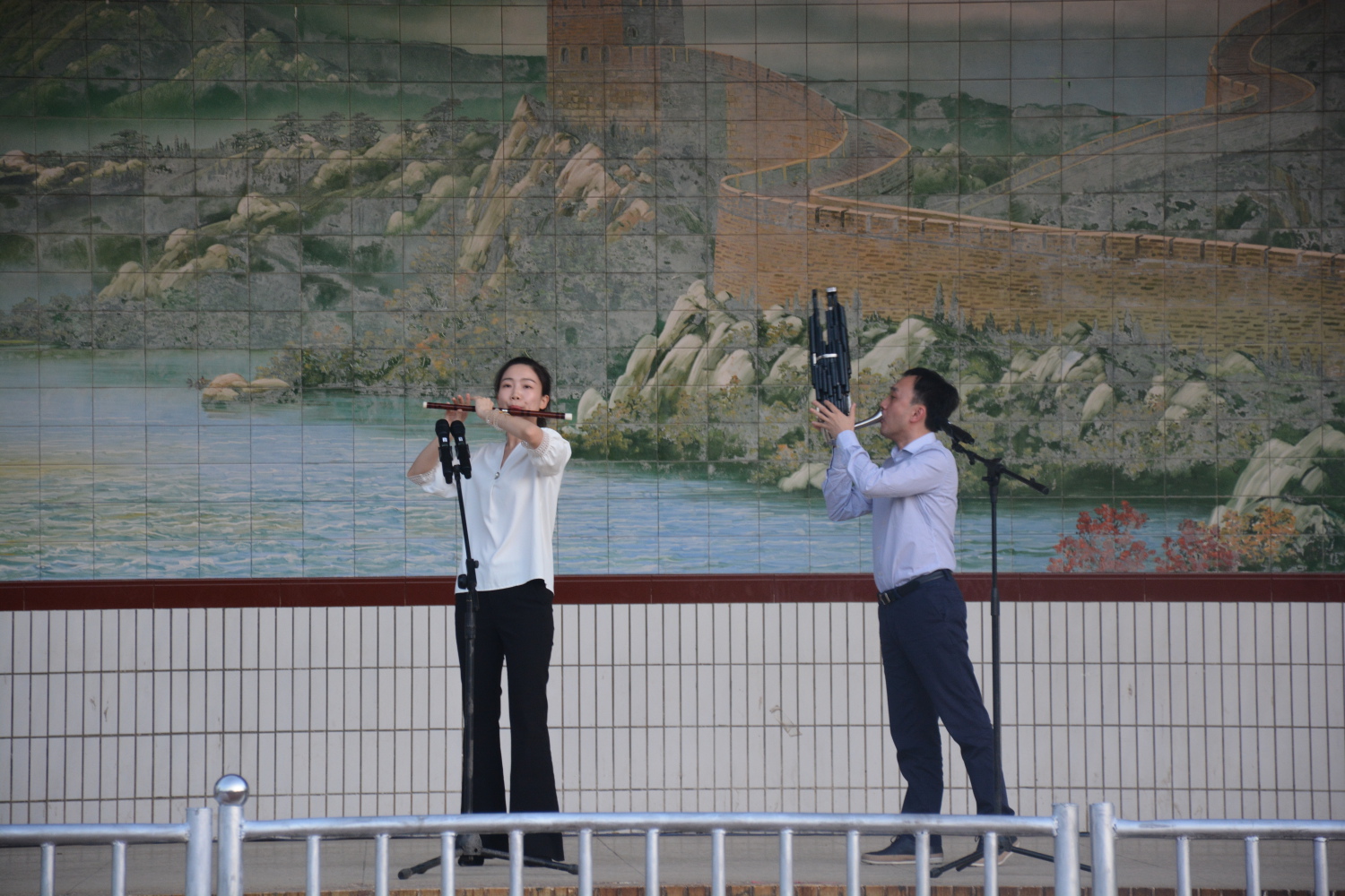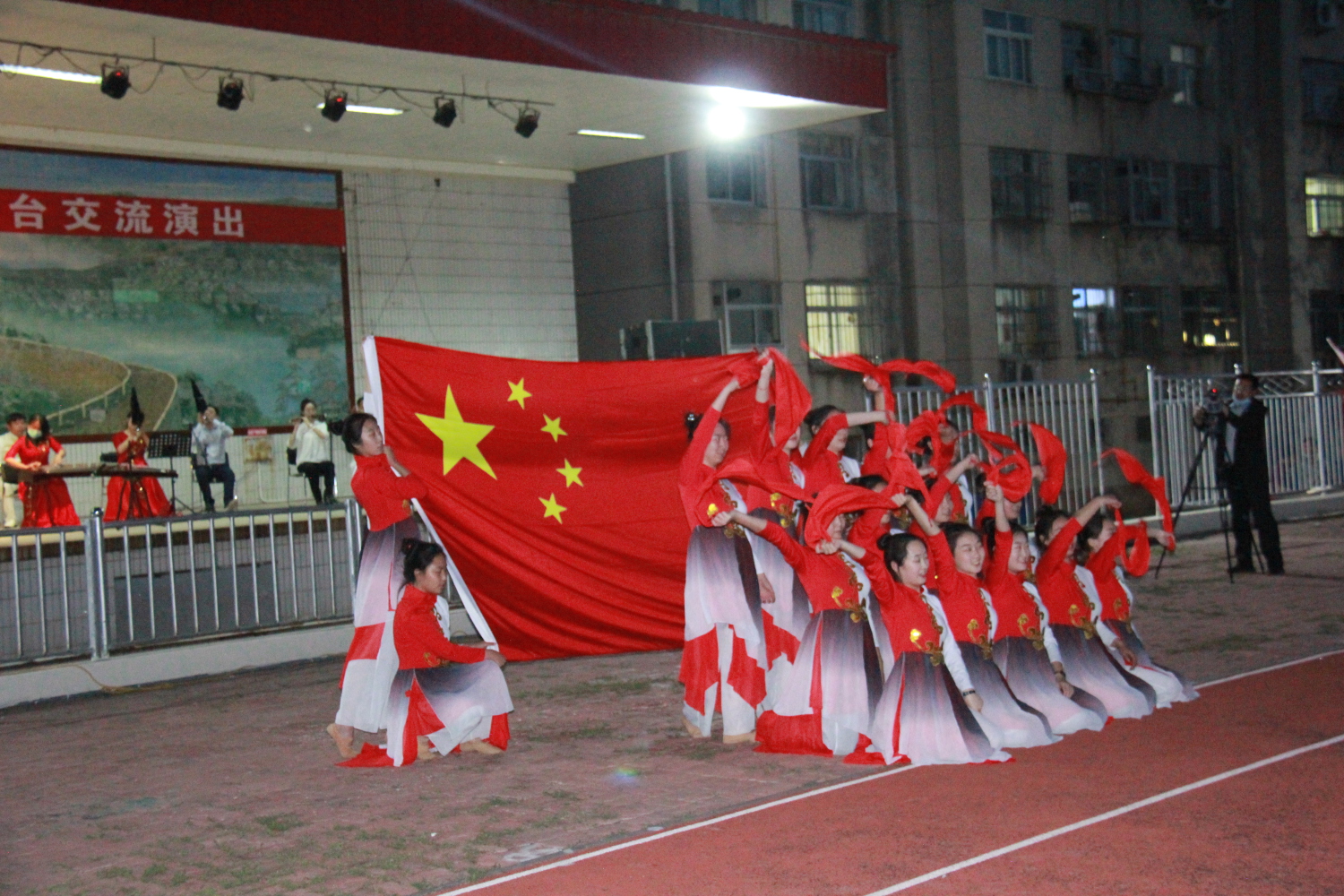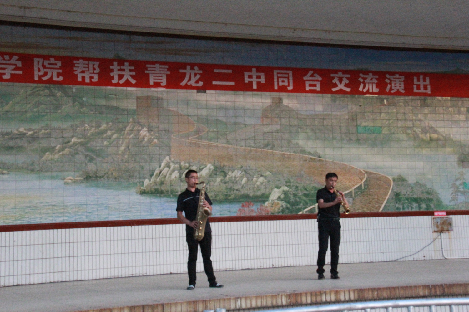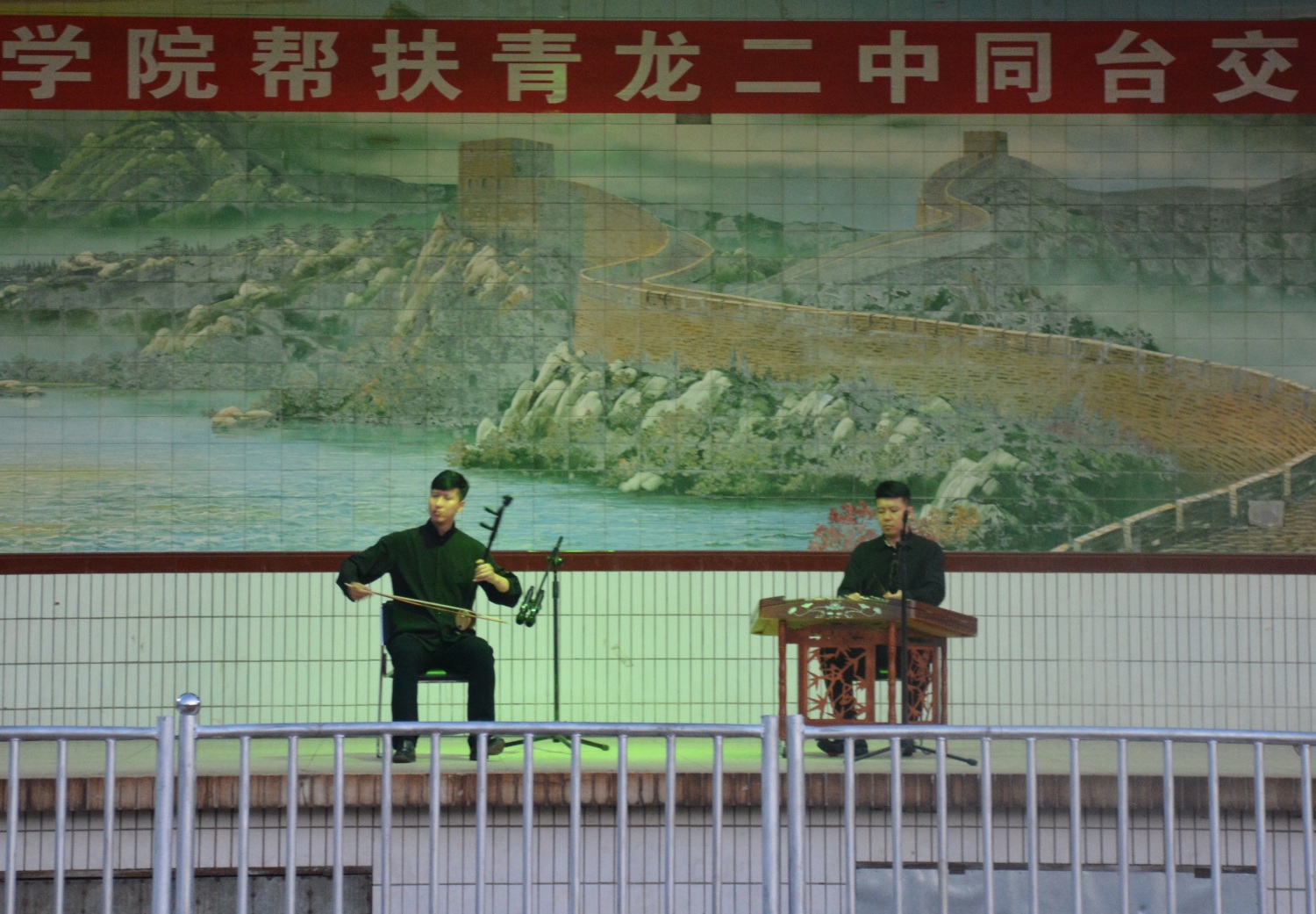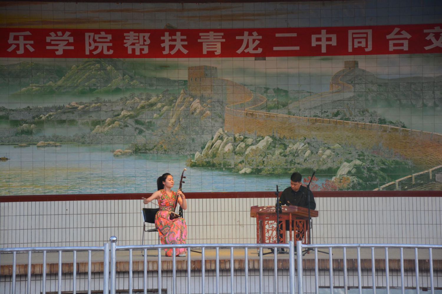 座谈会结束后,双方精心筹备的“kaiyun体育网页登录入口与青龙二中师生交流演出”在青龙二中操场主舞台举行。