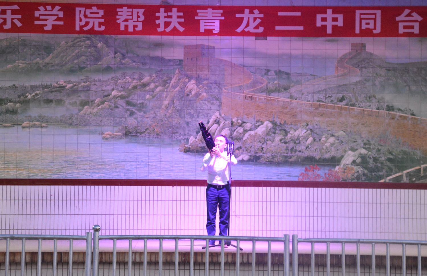 疫情无法阻挡爱心传递的脚步,病毒隔断不了相望守护的牵挂。随学院团队来到青龙县开展调研帮扶,是教育工作者的一项切实行动,也是践行文艺为人民服务的初心和使命。青龙县绿水青山、民风淳朴,青龙二中学子善良执着的眼神,流露出对美好生活的追求向往,真切期盼的目光,表露着对音乐艺术的深切渴望。县教育局在帮扶诉求中提出:“青龙二中是以艺术教育为主的综合性高中,但学校没有一首校歌;学校乐器紧缺,贵校如果有淘汰下来的,我们都需要;但这些诉求都请量力而行。”县二中两千多名学子在学校操场观看交流演出,这些殷切的诉求,真挚的表现,令我心情激荡。听到于红梅副院长代表学校对青龙县诉求的切实答复,令我感动暖心。爱心凝聚力量,同心共筑希望,传承优秀传统文化之精髓,笃实奋进不负初心与使命!