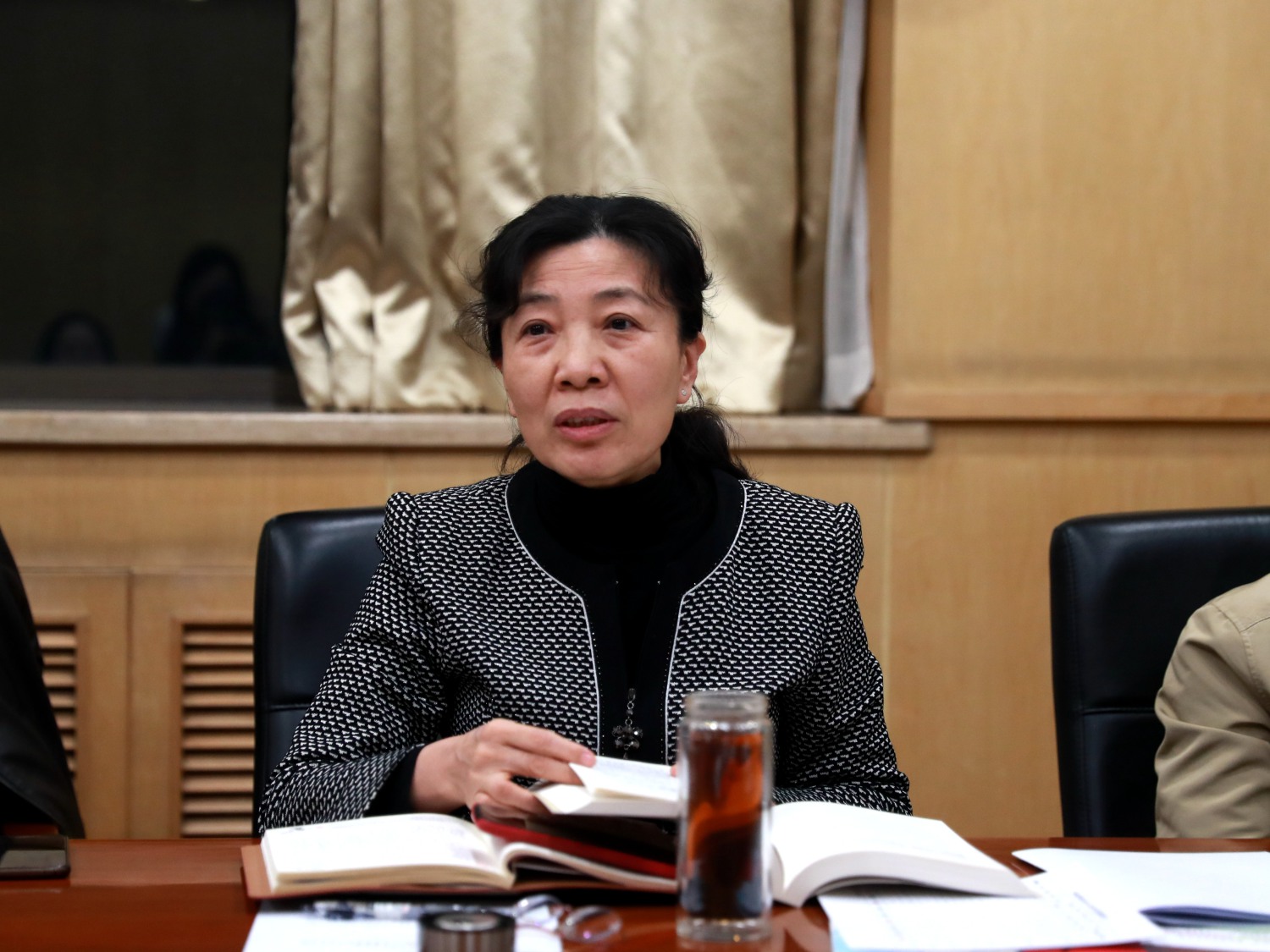 肖学俊副院长结合分管工作,对习近平总书记在哲学社会科学工作座谈会上的讲话进行了重温,并谈了心得体会。他强调,高等院校要始终坚持马克思主义在哲学社会科学领域的指导地位,要扎根中国大地,坚持一切从客观存在的实际出发,认真研究客观事物自身的规律性,从“实事”中“求是”。加强和改善党对哲学社会科学工作的领导,繁荣发展哲学社会科学事业。