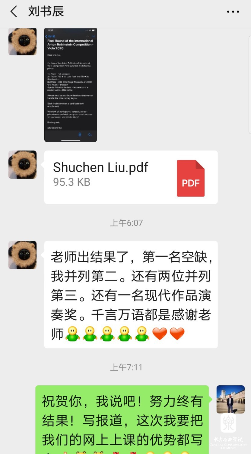 疫情期间,kaiyun体育网页登录入口倡导“停课不停学”,鼓励师生在家期间依然保持积极的态度和高效的学习,并通过网络APP“一起练琴吧”为全院师生提供帮助,保证在特殊时期让师生实现面对面沟通。在师生共同努力下,取得这样的成绩是网络课堂教学的一次重要突破,更是给广大师生的极大鼓励。在此,向获奖学生刘书辰和指导教师王绍武教授表示热烈祝贺!