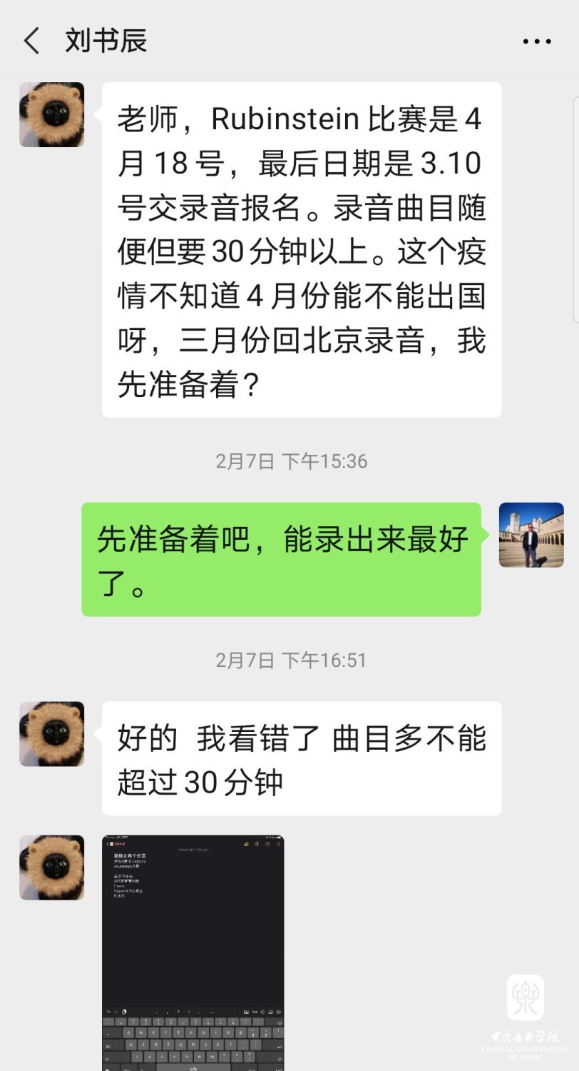 但受到全球疫情影响,组委会临时决定将比赛改为视频形式选拔。这对于各国选手在疫情期间如何高质量、好心态完成比赛更是极大的挑战。同时,对疫情期间“停课不停学”的教学质量也是巨大的考验。如何能在特殊时期为学生的专业提升、身心健康保驾护航?如何指导学生卸下不必有的包袱,轻装上阵,代表国家和学校参加世界级音乐比赛且赛出央音学子的水准与风采?...针对这一系列的教学新课题,王绍武老师进行了深入地思考,通过这次比赛实践总结了教学心得,在此也与大家分享: