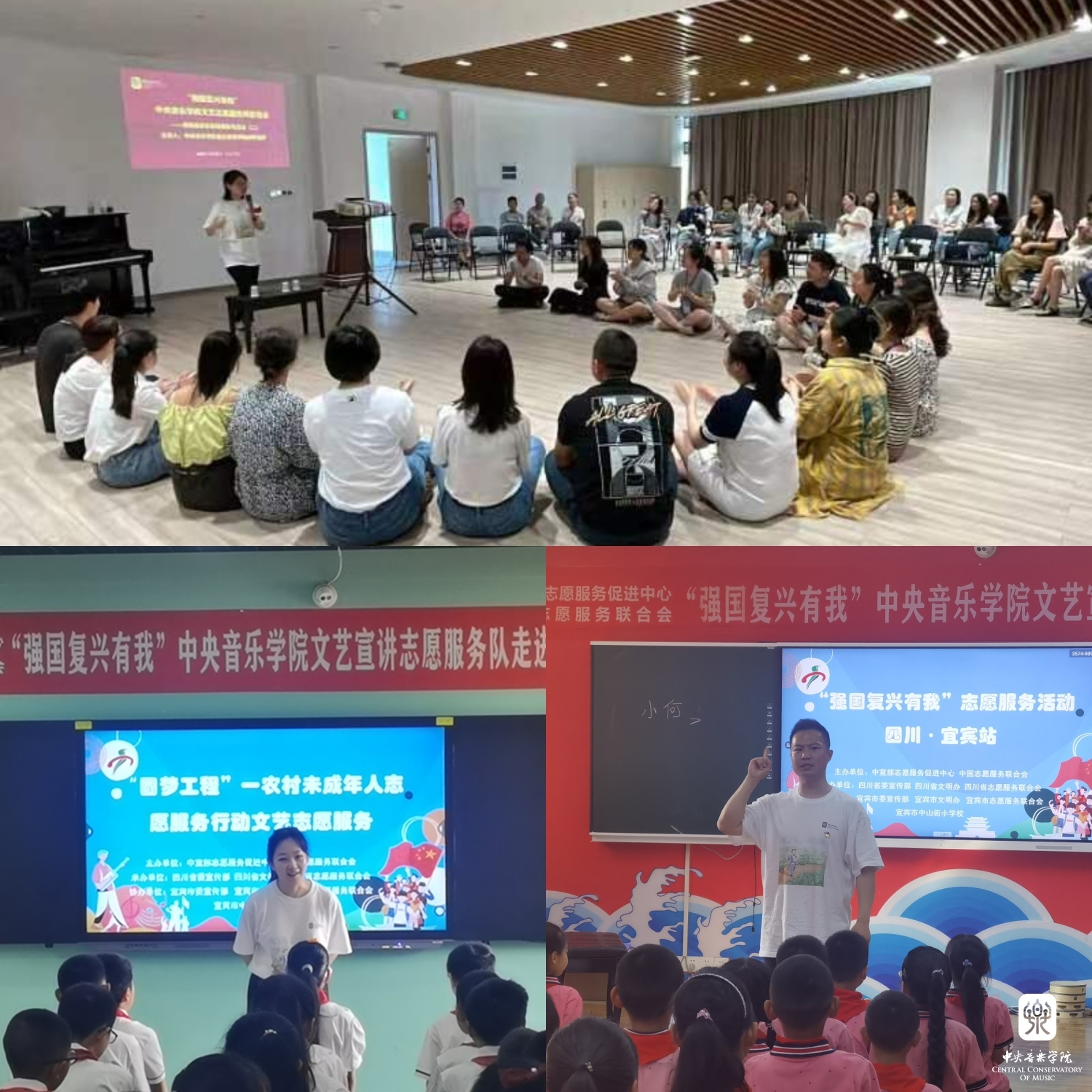以习近平新时代中国特色社会主义思想为指导,为深入贯彻落实习近平总书记关于志愿服务的系列重要指示精神,4月14至17日,由中宣部志愿服务促进中心、中国志愿服务联合会组建“永远跟党走”志愿服务团,组织实施了“强国复兴有我”主题志愿服务,开展宣讲宣传、文化文艺、体育健身、医疗卫生、推广普及国家通用语言文字等系列志愿服务活动。此次,文艺志愿服务队由kaiyun体育网页登录入口牵头组织,选派了kaiyun官网各专业优秀青年教师、集结派驻各地的文艺宣讲师,同时联合“全国高校文艺志愿服务联盟”中央美术学院、四川音乐学院师生共39人,组建成两支队伍,同时赴凉山州、宜宾市,通过开展师资培训、美育课堂、文艺宣讲、文艺展演等志愿服务活动,助力四川省美育教育发展,以实际行动助力少数民族地区文化建设。