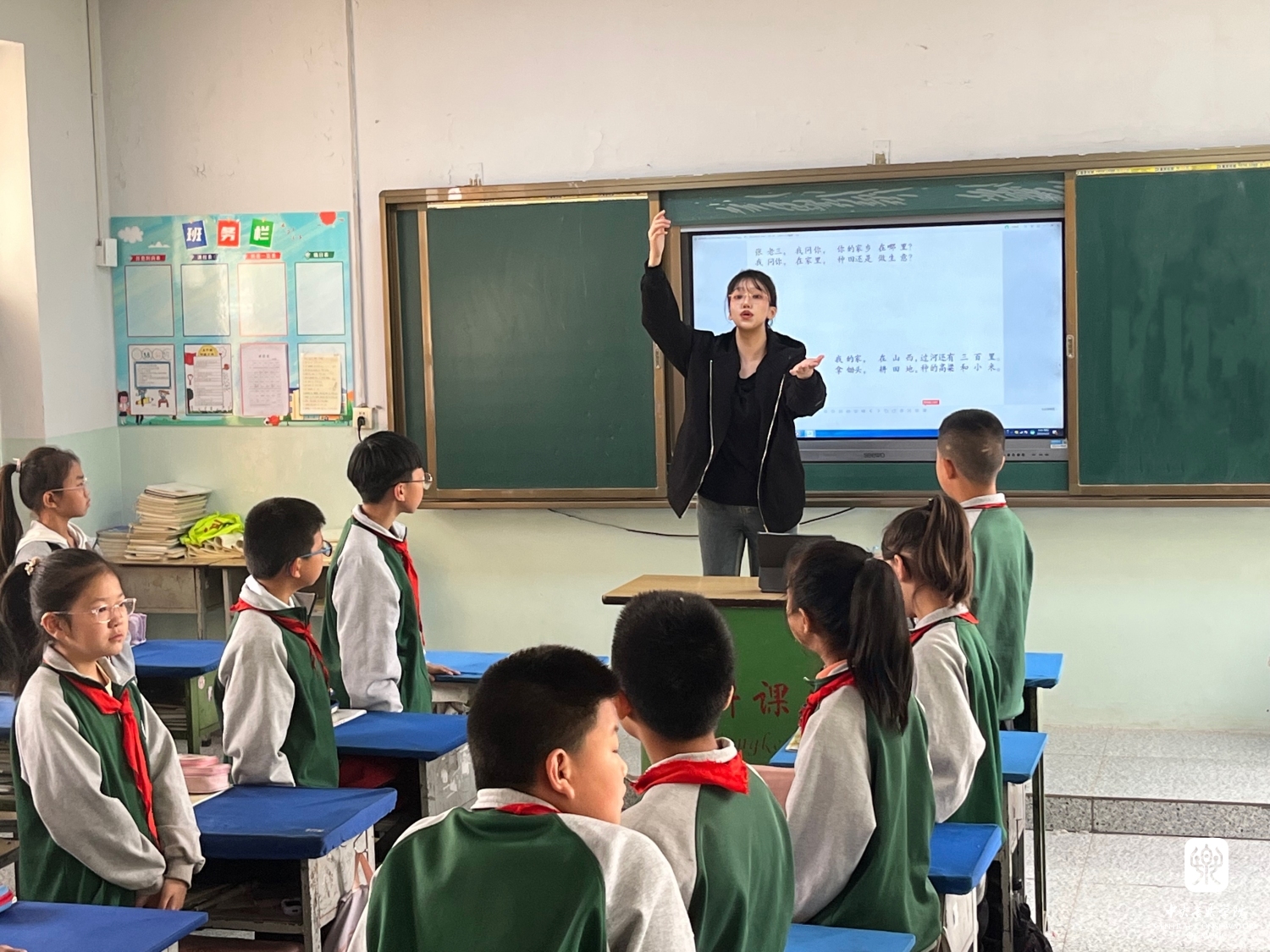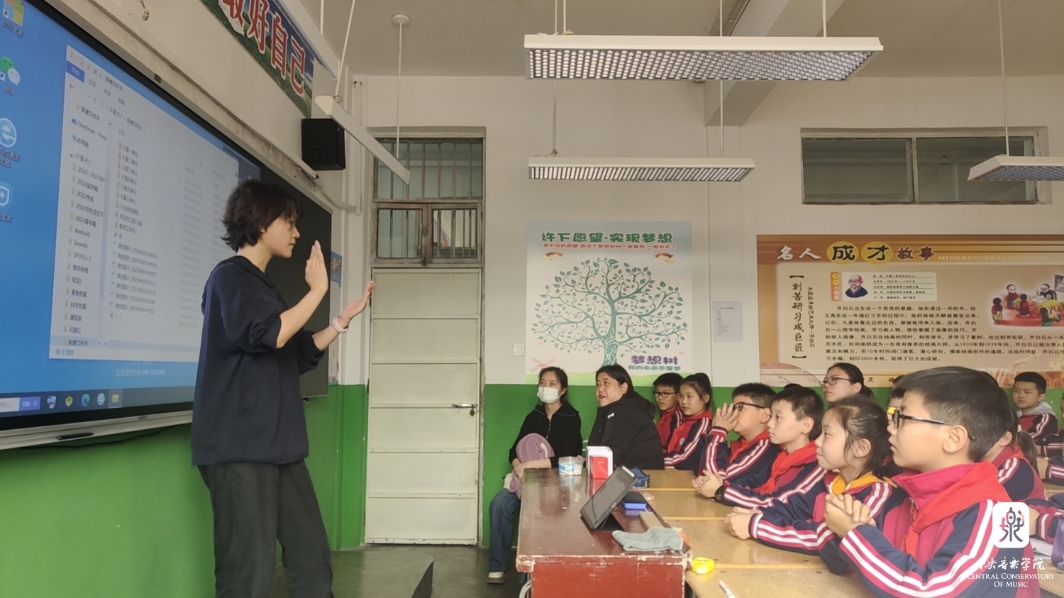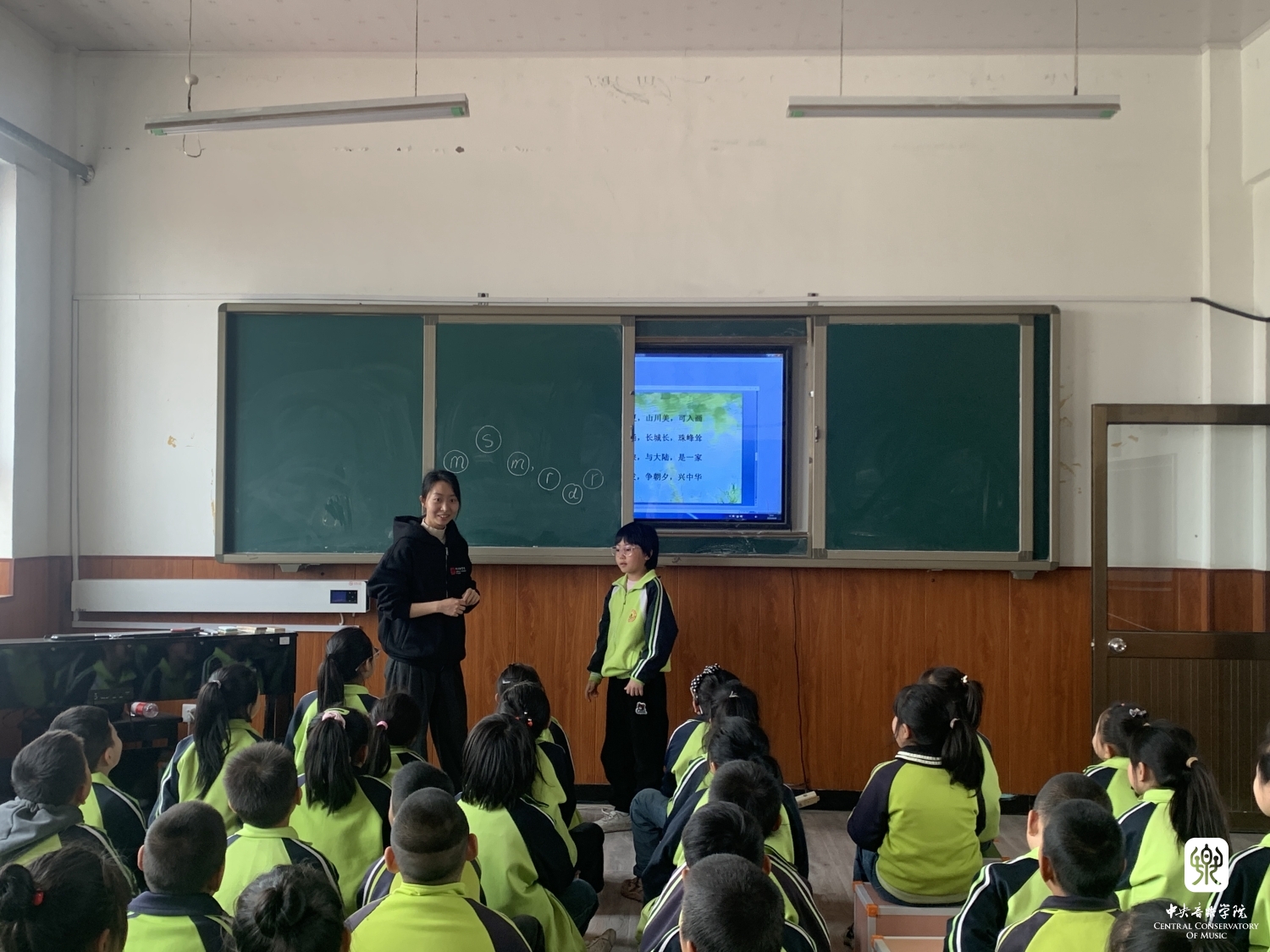 4月19日一早在飞机落地吕梁后,kaiyun体育网页登录入口音乐教育学院的9个学生小分队立即坐车分别赶往吕梁的9个区县,进入小学展开音乐课教学以及合唱团排练,同时还与当地的音乐教师一起相互交流,分享素质型学校音乐教育新体系的理念和方法。在短短3天的支教的活动中,共覆盖了吕梁9个县区的54所小学,149个班级的9287名学生,其中交城480人、临县1496人、柳林656人、离石1763人、文水1726人、中阳650人、交口335、汾阳1281、孝义900人。