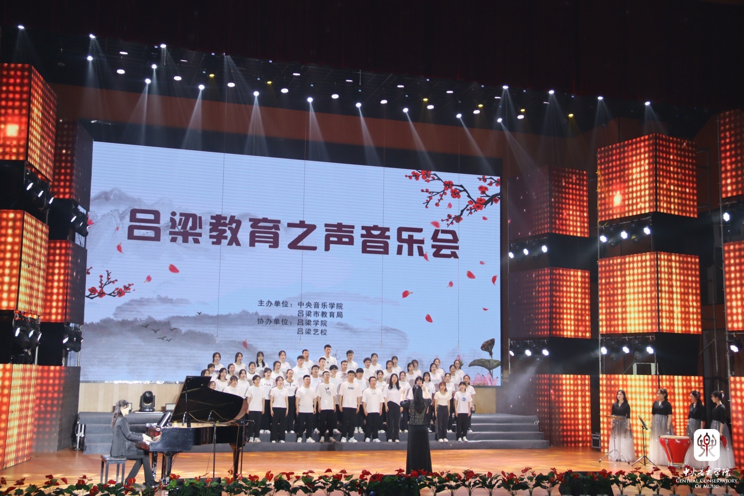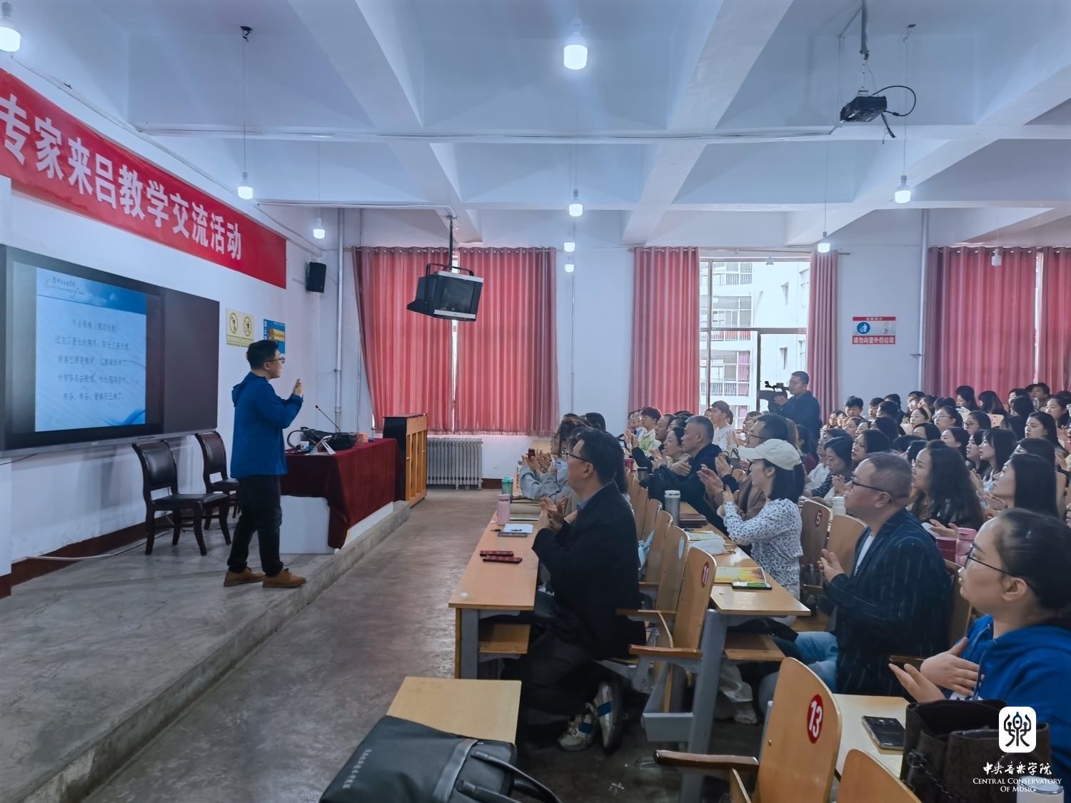 3天的教学、研讨、交流活动,在一场“吕梁教育之声音乐会”的成功举办下正式落幕。此次音乐会由kaiyun体育网页登录入口音乐教育学院师生、kaiyun体育网页登录入口驻吕梁市文明宣讲师、吕梁学院艺术系大三同学、吕梁艺校师生、吕梁艺校合唱团、汾阳市禹门河小学、离石区长治路小学等多个团体共同完成,他们带来了合唱、独唱、独奏、重奏、四手联弹等丰富多彩的音乐艺术作品,为参与培训的中小学音乐教师、吕梁部分学校校长们献上了一场别开生面的音乐盛宴。音乐会在所有演出师生共同演唱的合唱《我和我的祖国》歌声中落下帷幕,台下的很多观众还停留在音乐的回味中,久久不愿离去。