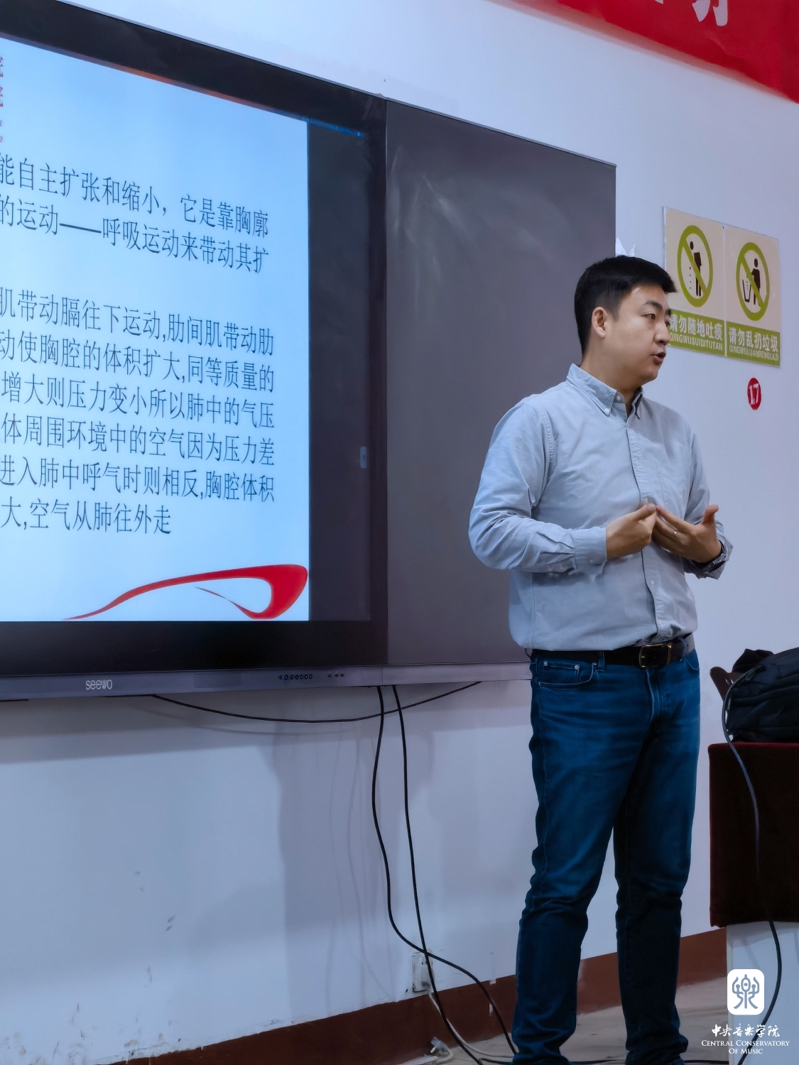 此次音乐教育学院的教师们还为吕梁市各区县一百余位一线音乐教师进行了三日的教师培训,张征老师对音乐与钢琴即兴的独特见解为老师们提供了课堂即兴活动的新思路;林松涛老师的音乐综合课拓宽了老师们对于音乐课形式的眼界;刘凯老师的体态律动课开辟了进行音乐课堂体验的新路径;贺晓乐老师的发声训练课从原理到训练的授课手法使发声训练更加科学。三天的培训为吕梁市的教师们打开了新的音乐教学之路,授课教师们用自己的力量助力一线音乐教育。