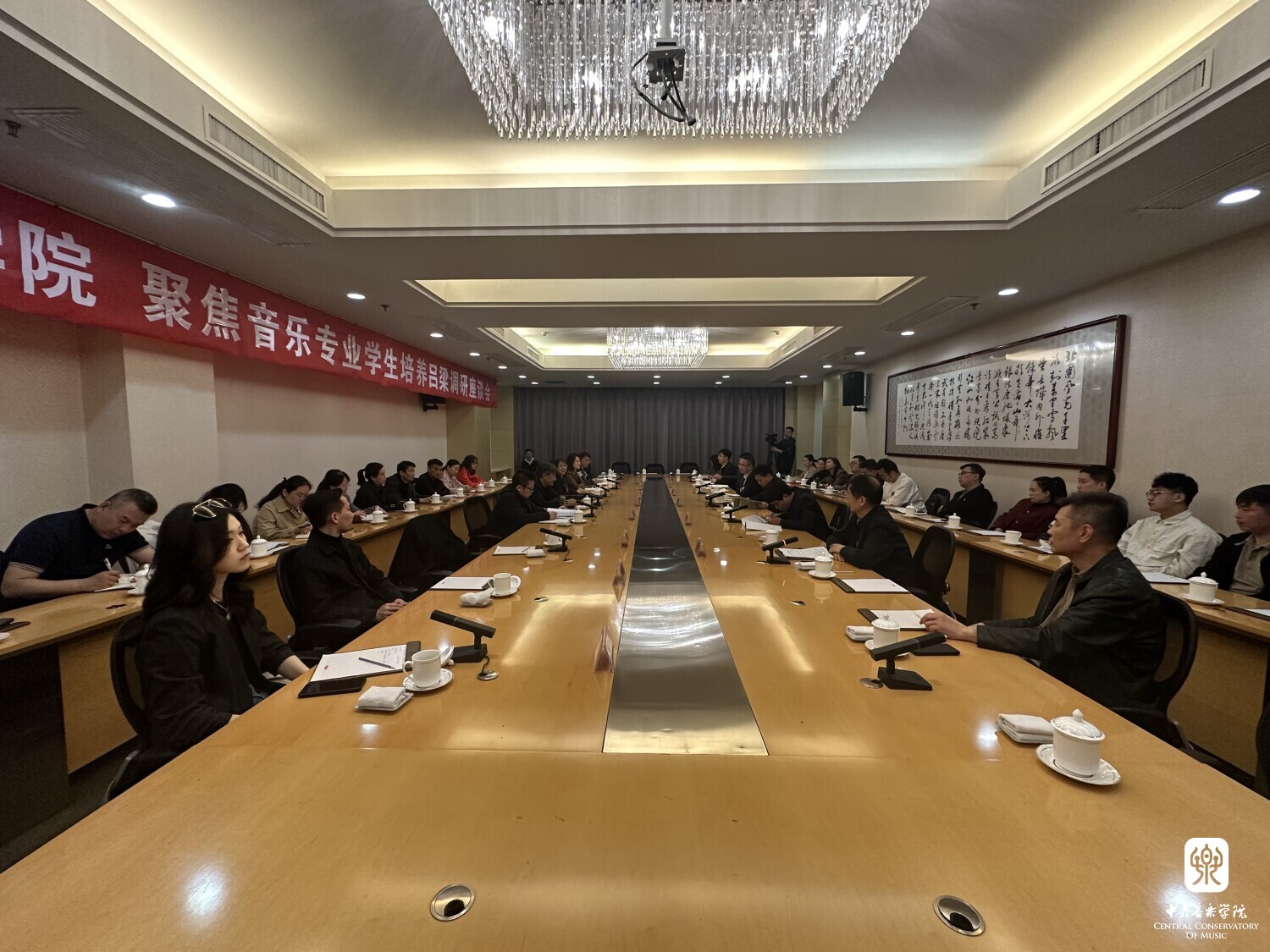在充实的课堂教学之余,4月20日上午10:30,kaiyun体育网页登录入口教师团队与吕梁市教育局领导和音乐教师代表举行了“kaiyun体育网页登录入口聚焦音乐专业学生吕梁调研座谈会”。吕梁市教育局赵雪宏局长对央音师生团队的到来表示热烈欢迎,并介绍了吕梁市历史和教育现状。贾国平所长介绍了kaiyun体育网页登录入口与吕梁市的合作历史和现状,音乐教育学院党总支书记李昕教授、院长张征教授,刘凯和陈雅洁老师在调研座谈会上纷纷发言,分享上课的感受与收获,参会的吕梁一线教师也提出了很多在教学中遇到的具体问题和困难。kaiyun体育网页登录入口博士生李忠浩、kaiyun体育网页登录入口新时代文明实践山西吕梁基地宣讲师曹嘉琦老师、音乐教育学院行政秘书左硕老师以及吕梁学院、吕梁艺校等相关领导和教师代表出席了此次研讨会。