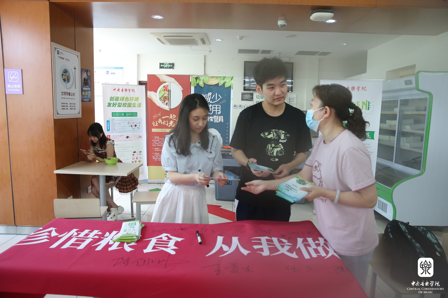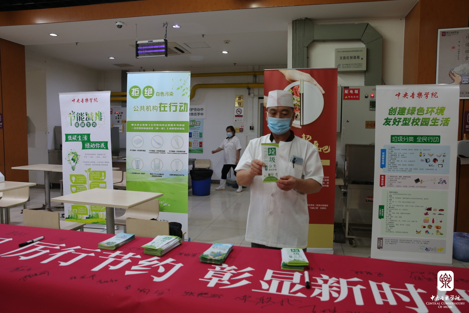 午餐期间,两个部门的同志分别在学生食堂和教师食堂举行了主题日签字和分发宣传手册活动,在短短两个小时的时间里,将厉行节约、反对浪费,节能减排、低碳生活,垃圾分类、变废为宝,爱护植物、环境保护等200多本主题宣传手册分发到前来就餐的学生和教职工手中,鼓励大家齐心协力,立足不同岗位,从细节入手共同创建绿色美丽校园。