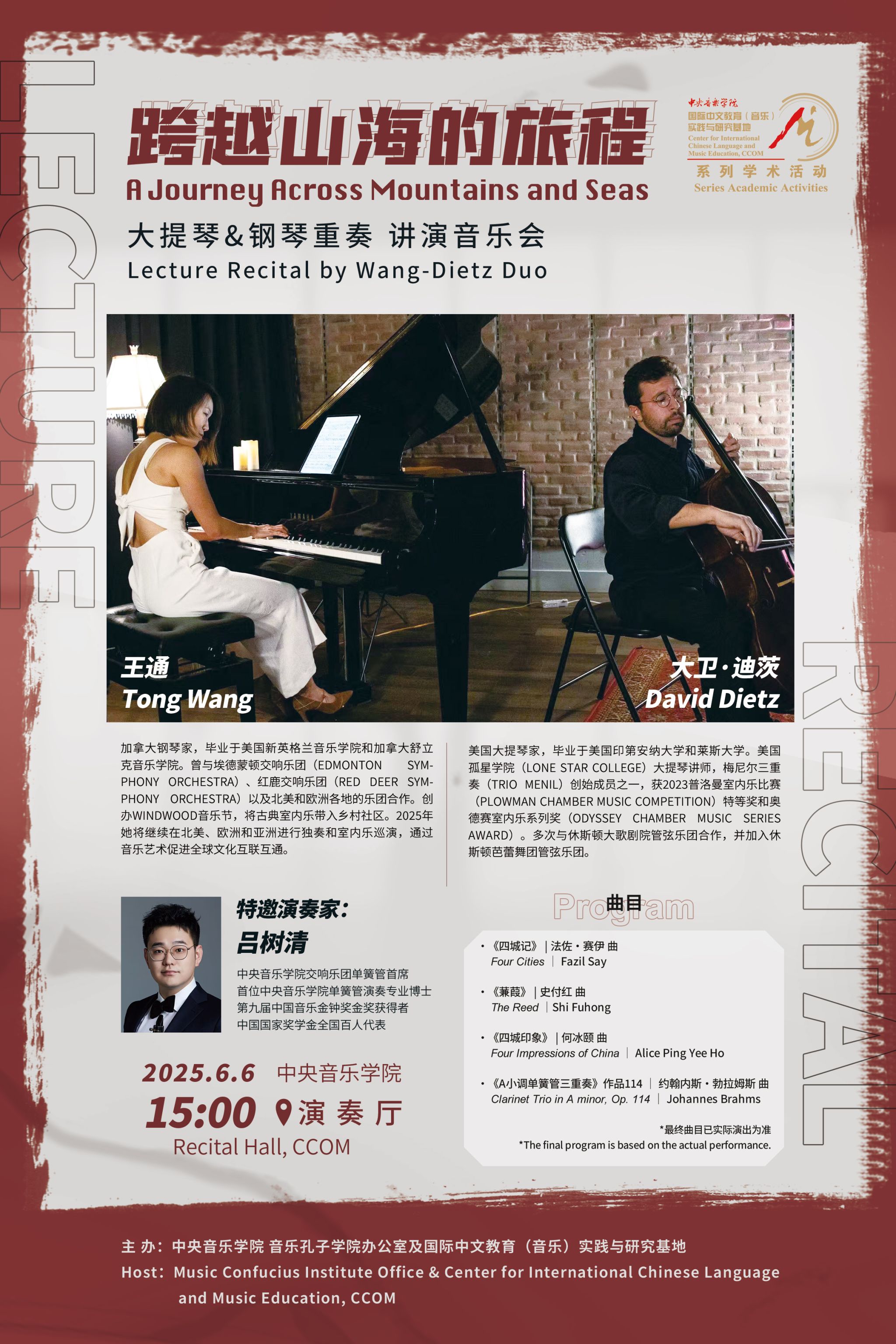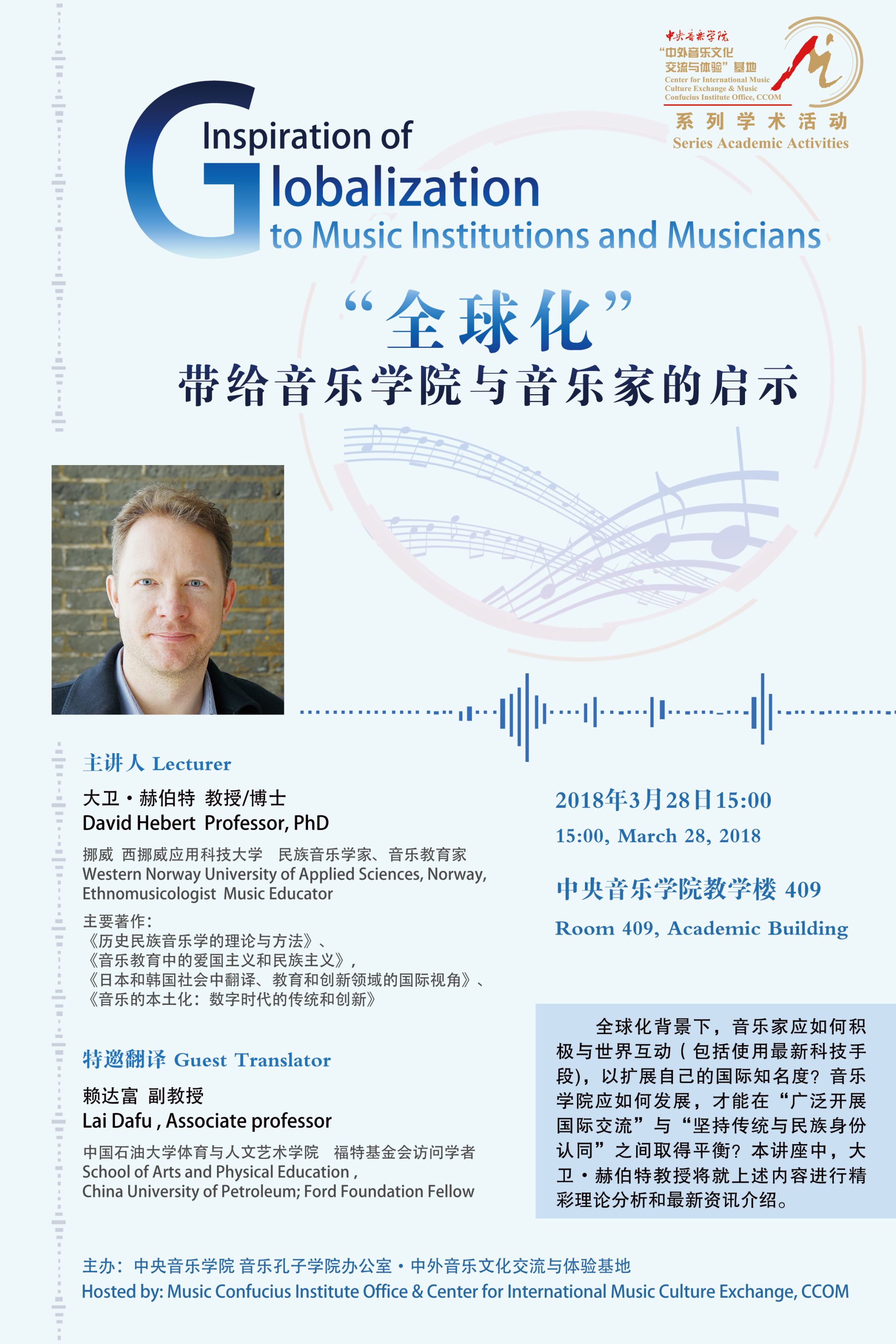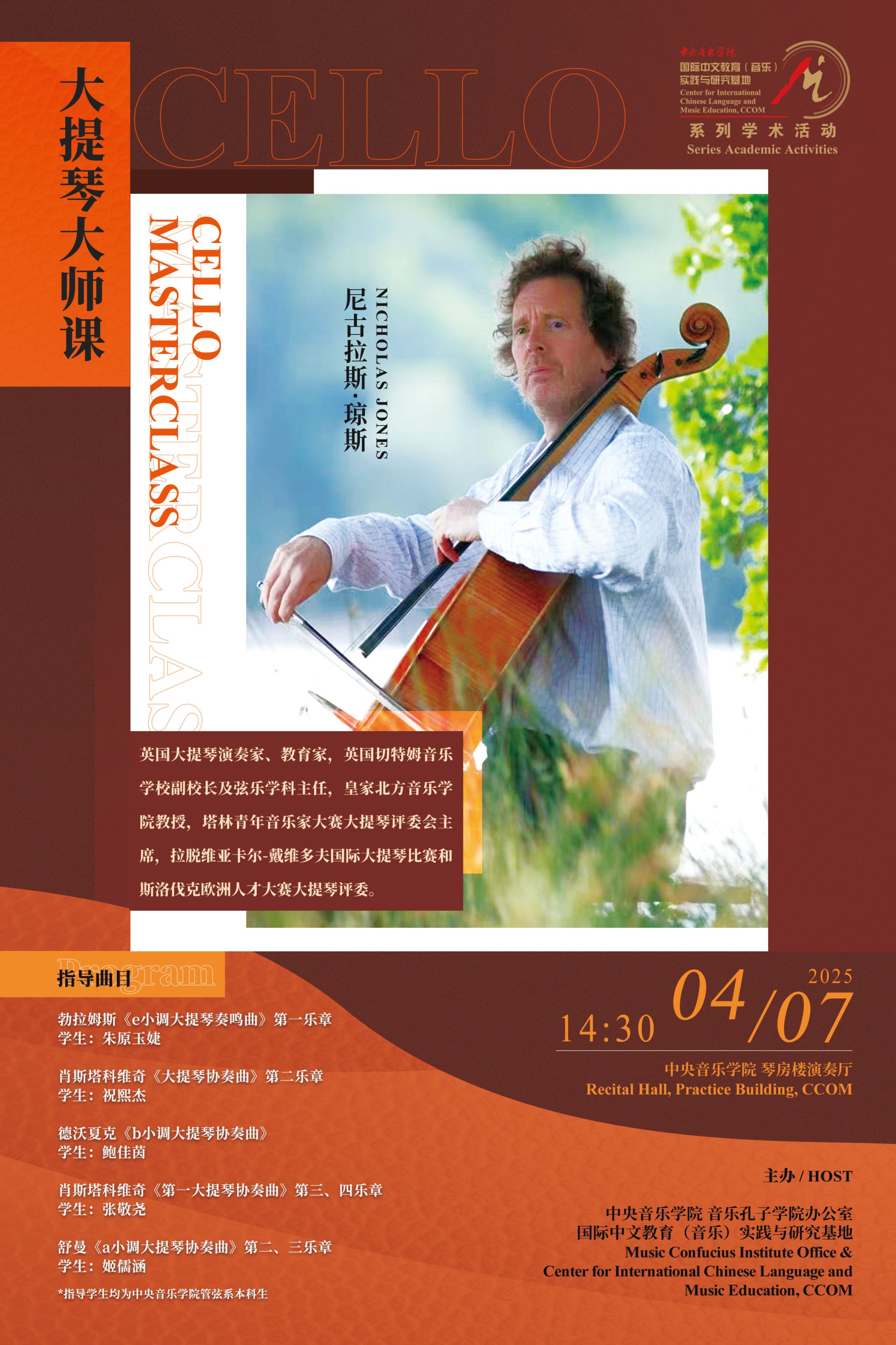 自2014年起,音乐孔子学院办公室及国际中文教育(音乐)实践与研究基地先后联合多国驻华使馆、孔子学院、海内外知名音乐院校及kaiyun体育网页登录入口各系部,邀请世界各国优秀音乐专家和艺术团体在kaiyun体育网页登录入口举办音乐会、学术讲座、大师班等多种形式的小型音乐学术交流活动63场,受众近万人,持续推动中外音乐文化交流。