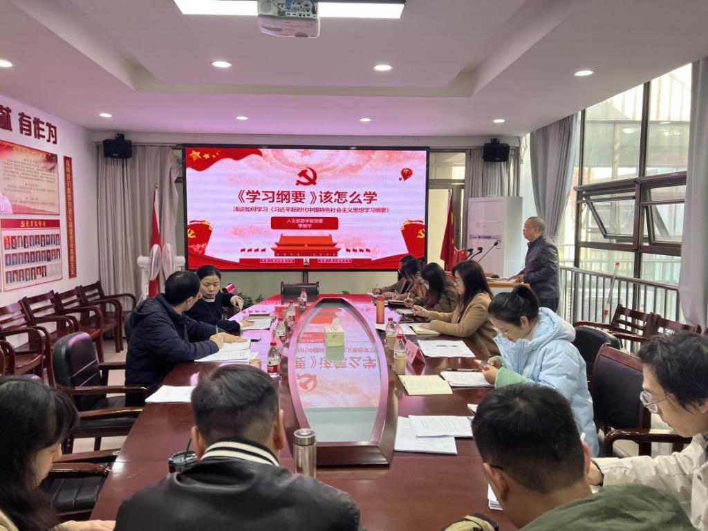11月24日下午,学院党委理论学习中心组召开2023年度第4次(扩大)学习会,会议专题学习习近平新时代中国特色社会主义思想体系的系统阐述、习近平总书记关于“四下基层”的重要批示精神、习近平总书记关于树立和践行正确政绩观的重要论述、习近平关于思政课建设的重要论述。学院党委负责人主持会议,学院党政班子成员,各支部书记、科室负责人及新引进三年教师参加会议并交流发言。校党委委员、纪委书记吕华、纪委办副书记朱淑珍、组织部副部长邓建兵、纪委办科长石瑶宁巡听旁听此次会议。