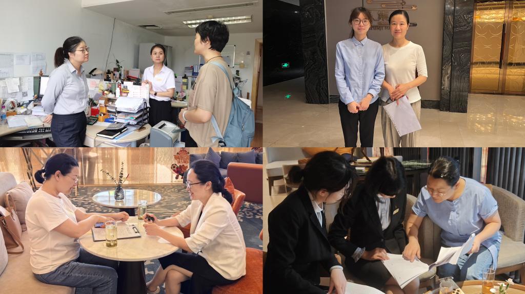 交流过程中,教师们了解学生在实习期间的工作状态、技能提升及生活环境,亲身体验客房管理、餐厅服务、前厅接待等关键岗位的工作流程,与酒店经理就人才培养、课程设置、实践教学等方面进行深入交流,认真听取企业方对专业人才的需求和建议。