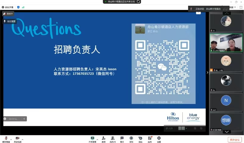 为了进一步拓展毕业生的就业渠道,加强与企业间的交流合作,开云官网积极开展了线上访企拓岗活动。2024年11月18日中午,开云kaiyun官网成功举办了与舟山普陀东潮文化旅游发展有限公司海洲酒店分公司的线上招聘宣讲会,学院酒店管理与数字化运营专业的应届毕业生参加。