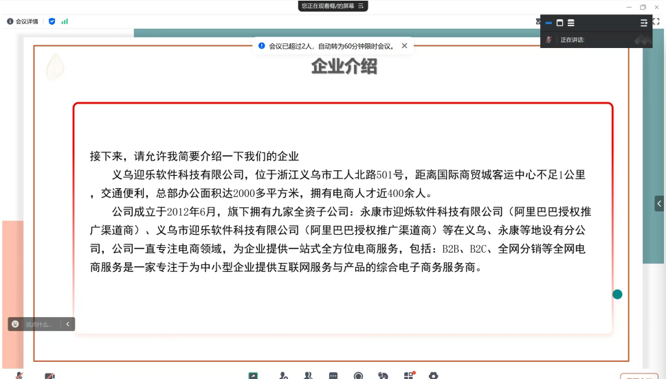 学院于12月5日中午在腾讯会议举办义乌市迎乐软件科技有限公司线上宣讲会,此次线上宣讲会的顺利召开,为进一步促进开云官网2025届毕业学生充分实习就业、高质量实习就业提供了坚实基础与有力支持。