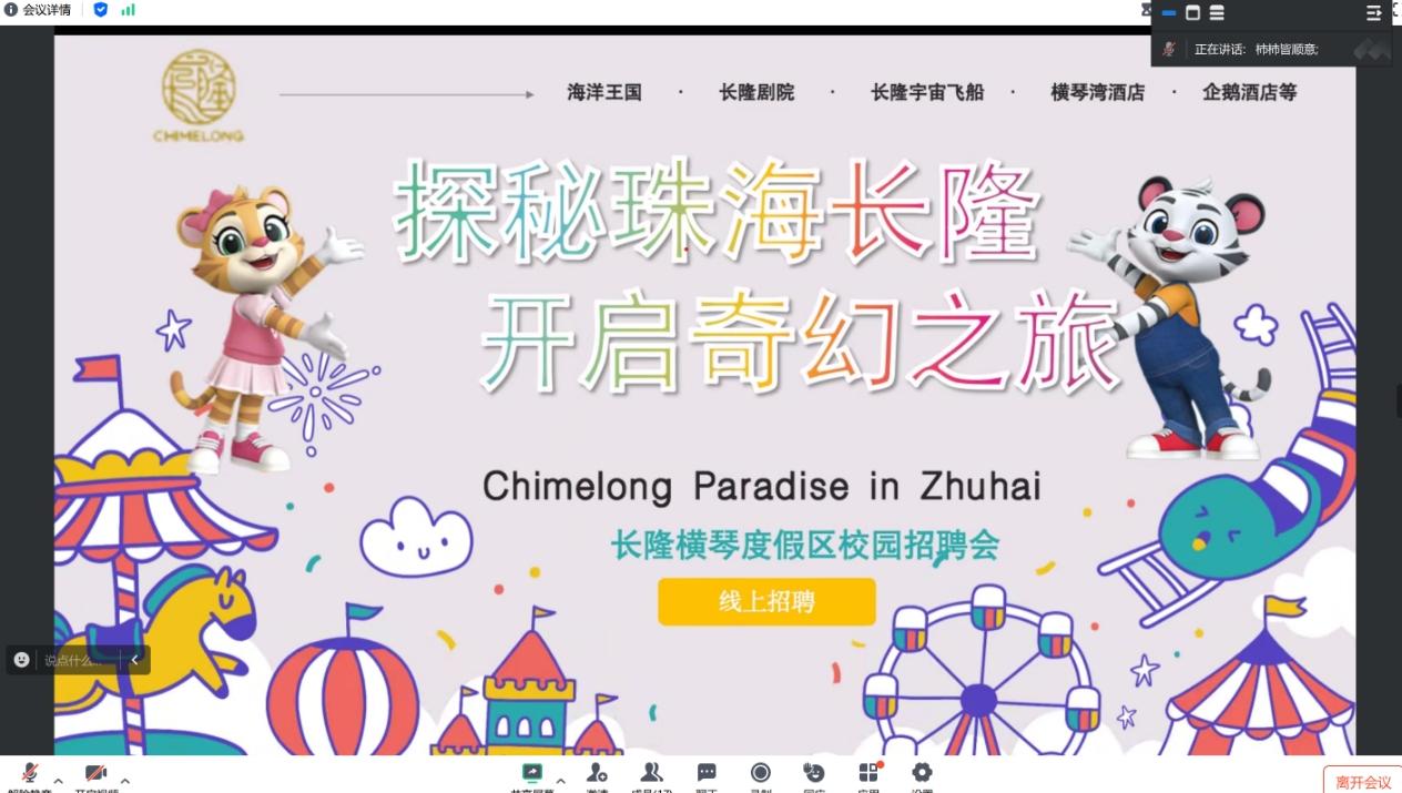 为深入推进2025届毕业生就业工作,搭建更多就业招聘平台,助推2025届毕业生高质量就业。12月11日,开云kaiyun官网邀请了珠海长隆投资发展有限公司HR为2025届毕业生开展线上宣讲会。